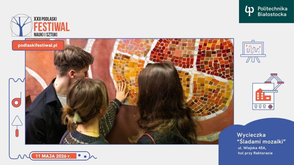 To spacer, podczas którego obejrzymy murale, napisy informacyjne, mozaiki i różnego typu zdobienie znajdujące się w przestrzeniach budynków Uczelni.